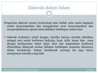 Dakwah merupakan kegiatan yang bersifat menyeru mengajak dan memanggil orang lain untuk lebih mengamalkan ajaran-ajaran Islam. Beliau menyatakan doktor akan terlebih dahulu. Kata metode ini sudah diserap ke dalam bahasa.